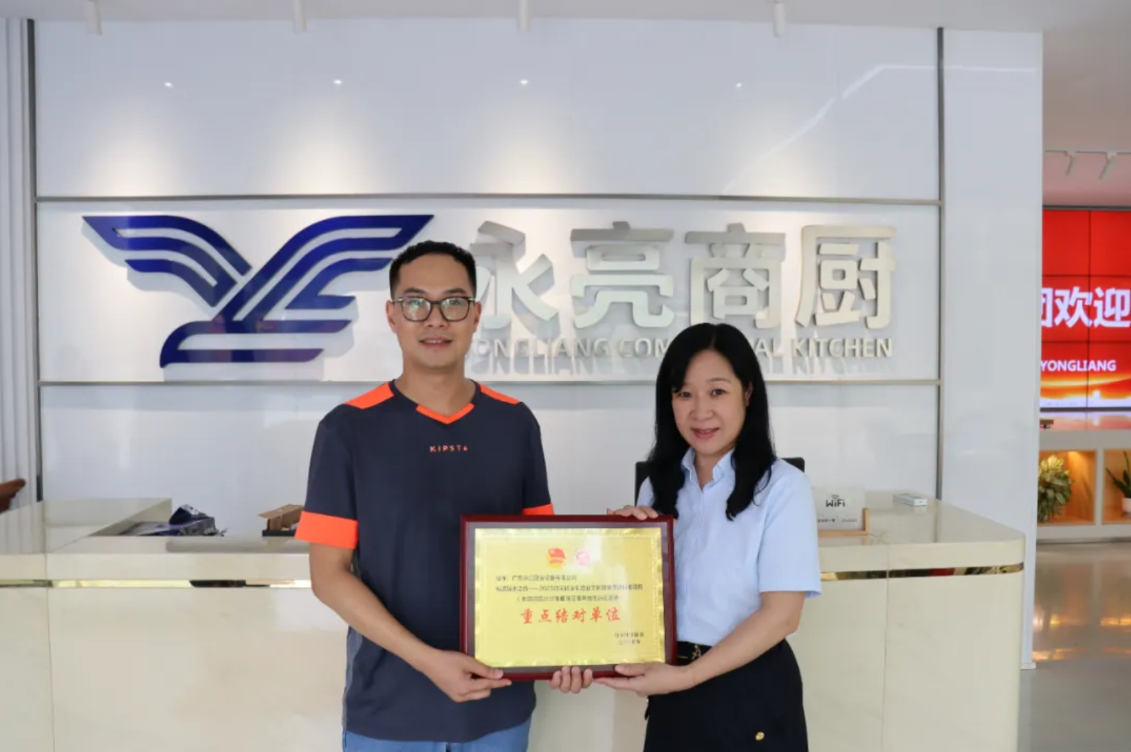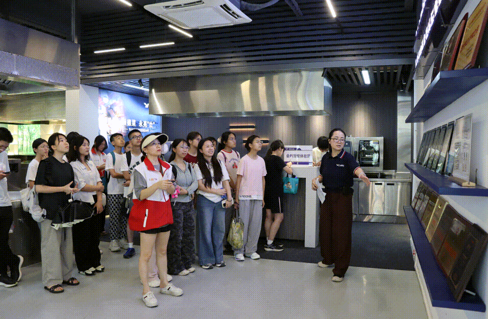 活动伊始,学员们用镜头记录下探索的起点,随后走进了永亮的产品展厅。这家扎根顺德近30年的本土制造标杆,以“构建更有品质的未来生活”为使命,其发展历程与创新成果在此生动呈现。琳琅满目的商用厨房设备——从燃气电磁大锅灶到智能炒炉、蒸饭柜,让学员们直观感受到永亮在商厨科技领域的专业与实力。随后播放的宣传片,则全景式展示了永亮从商厨起步,以及背后的技术创新与企业文化基因。