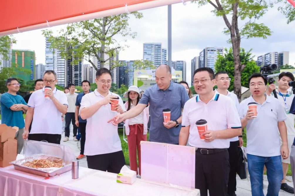 ▲顾耀辉书记等领导手持永亮智能茶饮成为活动的一道风景线
