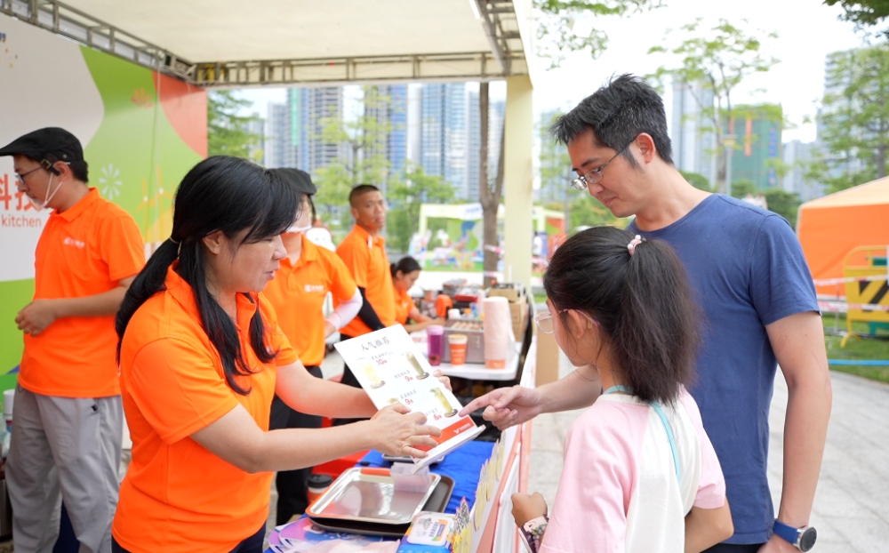 永亮商厨的智能茶饮机前排起长龙,成为整个美食节的“流量担当”。清爽的黄皮油柑汁让大人们喝上了瘾,而经典的鸭屎香柠檬茶,则让小朋友们拉着爸妈的衣角,新购后又频频“返场”复购。 最让我们感动的是,英姿飒爽的南海少年醒狮队队员也成了我们的“铁粉”,反复购买,人均4杯起!