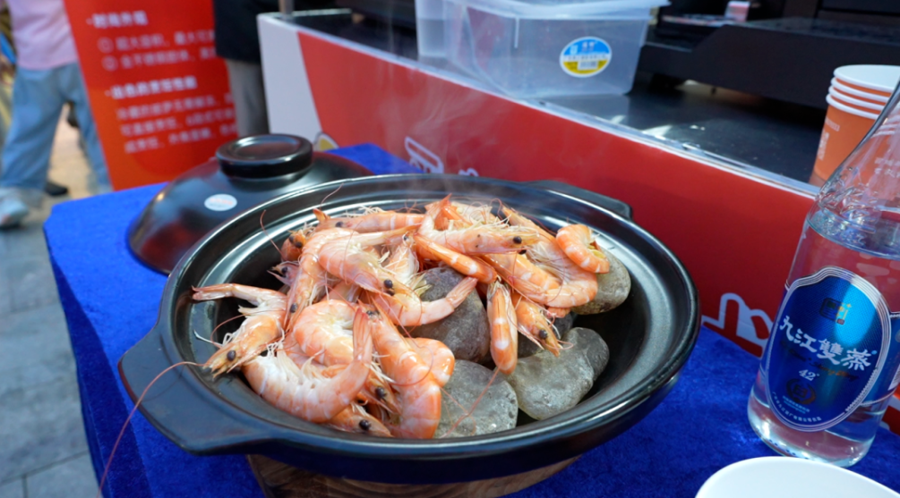 在永亮商厨展位另一侧的烹饪区,永亮智能厨具与本土风味的结合更是大放异彩。那道使用南海九江双蒸酒制作的 “醉薰水晶虾” ,吸引了大量游客排队试食。虾肉秒熟,入口鲜美弹牙,随后萦绕上一股独特的酒香,口感层次丰富,让人回味无穷,成为现场当之无愧的味蕾焦点。