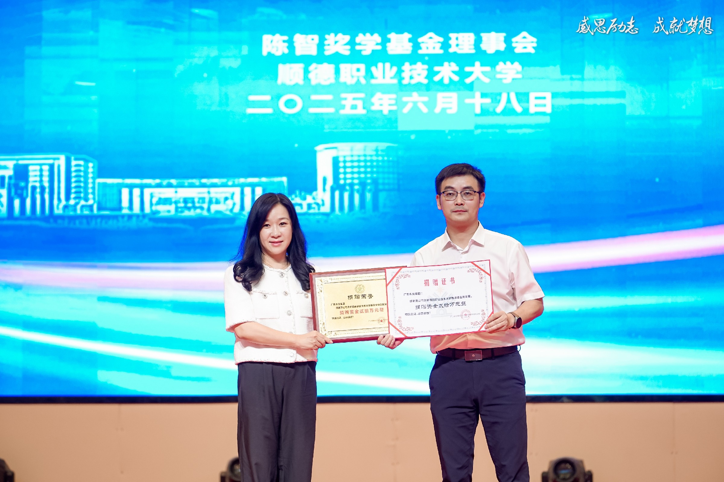 2025年6月18日下午,顺德职业技术大学陈智奖学基金理事会第十二次会议暨第十一届陈智奖学金颁奖典礼盛大举行。在这场意义非凡的典礼上,永亮再度展现担当,向陈智奖学基金捐赠人民币20万元整。为顺德职业技术大学优秀学子的逐梦之路照亮了前行方向,更彰显了其作为本土民营企业的深厚社会责任感。